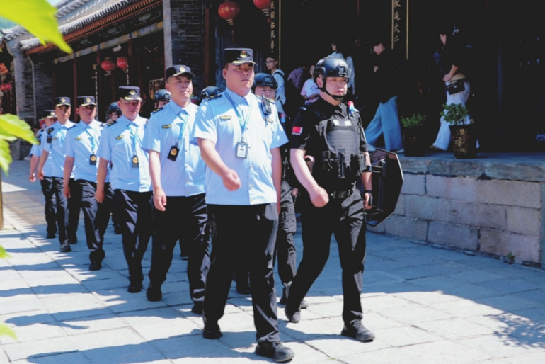 科學布警,撐起“平安傘”。在人流密集場所、重點路段、重點部位,景區(qū)公安分局強化警力配置,持續(xù)加大巡邏防控的力度和密度,最大限度將警力擺在街面,切實提高見警率、管事率。在景區(qū)熱門景點周邊,隨處都能看到警務人員巡邏站崗的身影。有警出警,無警巡邏,把巡防工作和日常接出警工作緊密融合,實現(xiàn)常態(tài)化巡邏和快速響應,切實增強了當?shù)鼐用窈陀慰汀翱吹靡姟钡陌踩小?/p>