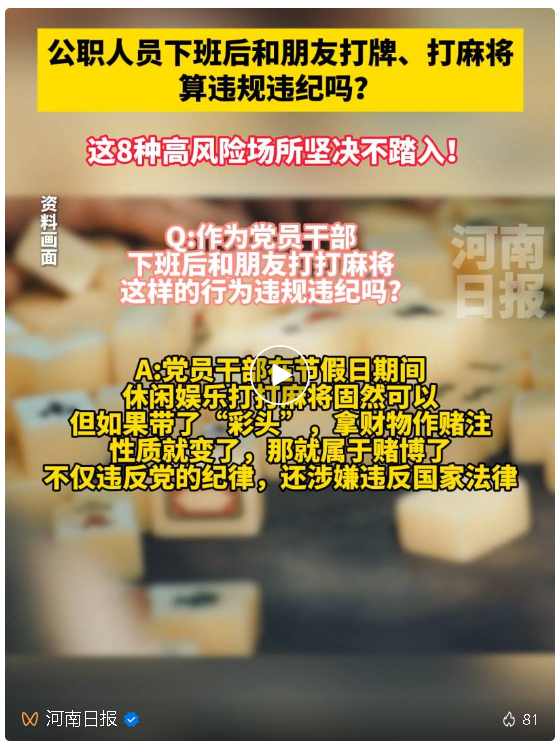 公職人員下班后和朋友打牌、打麻將,違規(guī)違紀嗎?