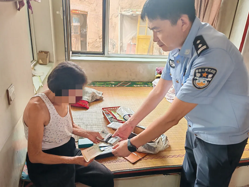 民警把財(cái)物交到老人手中并叮囑