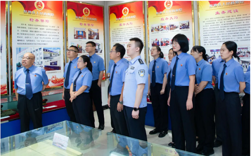 在實(shí)物陳列展區(qū),檢察干警參觀了歷任檢察長肖像墻、不同歷史時(shí)期的檢徽、手寫起訴書原件與打印文書、陳列疊放整齊的檢察制服,生動(dòng)串聯(lián)起檢察事業(yè)的時(shí)代發(fā)展脈絡(luò),深刻領(lǐng)會(huì)時(shí)代變遷中檢察干警的初心傳承與使命堅(jiān)守。在榮譽(yù)展廳,多面鮮紅的錦旗承載著人民群眾對(duì)保德縣檢察院工作的真摯認(rèn)可,陳列于玻璃展柜的各類榮譽(yù),生動(dòng)詮釋了保德檢察人接續(xù)奮斗、守護(hù)正義的使命榮光。全體檢察干警紛紛表示,要傳承優(yōu)良傳統(tǒng),以銳意進(jìn)取的姿態(tài)攻堅(jiān)克難,在司法實(shí)踐中勇攀高峰。