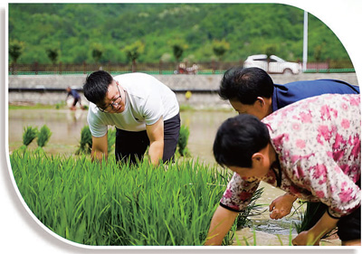 陜西佛坪縣陳家壩村黨支部書記王圓圓(左一)和村民一起拔秧苗。彭 超攝