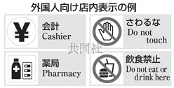 日本經濟產業(yè)省出臺有關店內標識的指南,要求盡量使用英語、圖形符號及漢字。(共同社)