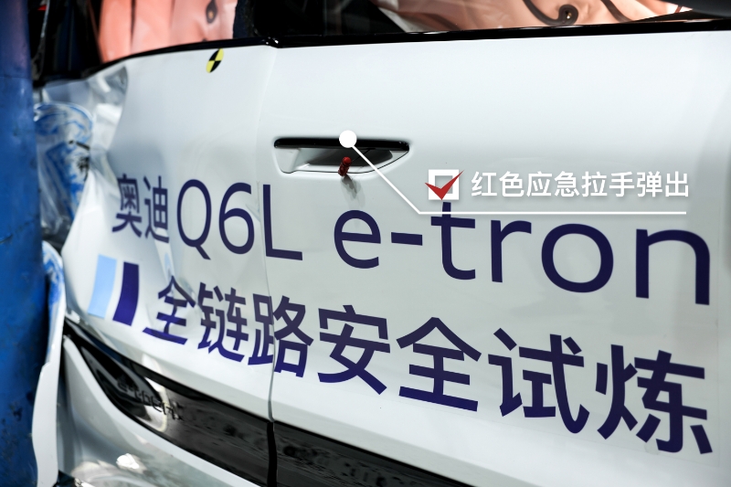 結(jié)果顯示,一汽奧迪Q6L e-tron車身結(jié)構(gòu)完整,A、B、C、D柱均未發(fā)生結(jié)構(gòu)性失效,兩次擠壓下乘員艙依然保持足夠的生存空間。安全帶正常預(yù)緊點(diǎn)爆,側(cè)氣囊、側(cè)氣簾及中央氣囊正常展開,全車假人傷害值均處于優(yōu)秀水平。電池組在遭遇“夾心式?jīng)_擊”后幾乎無變形、無位移,經(jīng)受住幾何形變與短路風(fēng)險雙重考驗(yàn),未發(fā)生冒煙、起火、爆炸或電解液泄漏。高壓系統(tǒng)在毫秒級內(nèi)完成高壓斷電,有效避免短路造成熱失控風(fēng)險。通過科學(xué)的走線,有效的結(jié)構(gòu)保護(hù),以及冗余的功能設(shè)計,保障極限場景下低壓電正常工作。半隱藏式車門把手的紅色應(yīng)急拉手正常彈出,前排車門可正常打開,電動座椅可調(diào)節(jié);車窗自動下降,保障車內(nèi)空氣流動。碰撞后雙閃及時開啟,E-CALL及時啟動并接通人工客服。從堅(jiān)若磐石的乘員艙結(jié)構(gòu),到周全可靠的碰撞后救援機(jī)制等,每一個安全細(xì)節(jié)都交出了高分答卷。