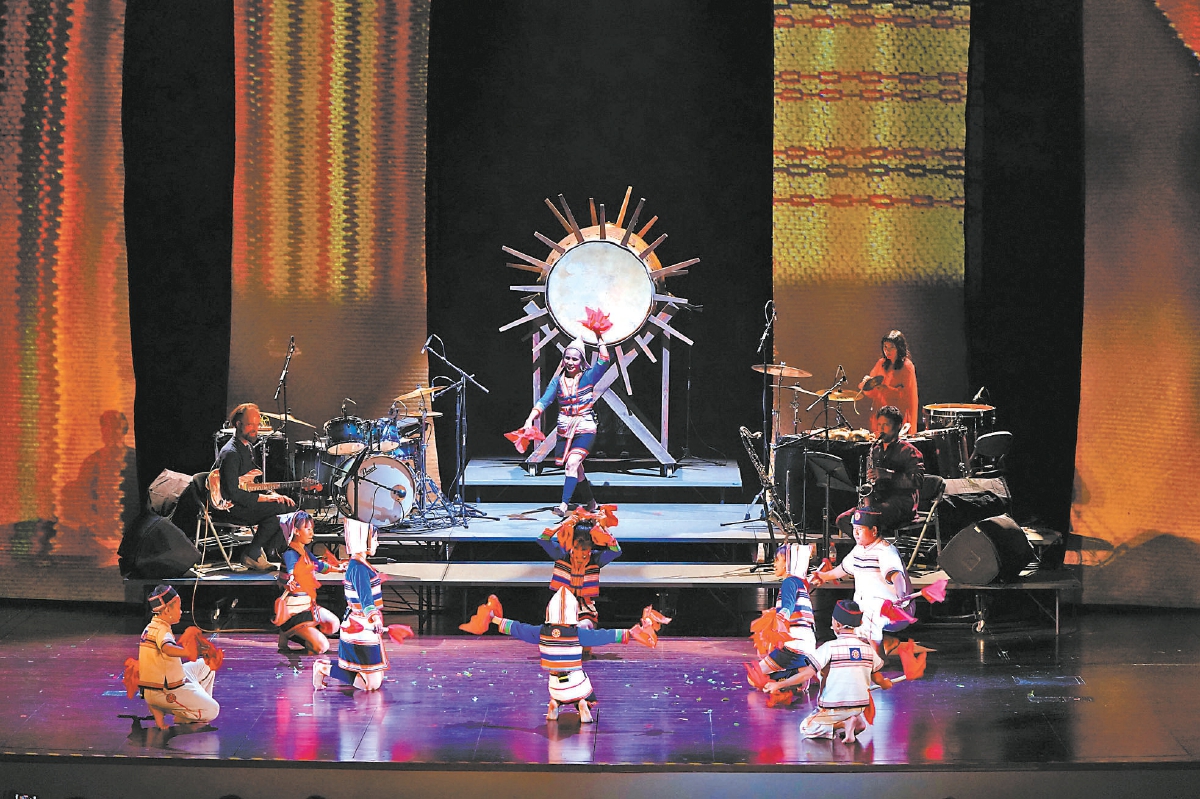 10月12日晚,一場(chǎng)將云南深山原始生命力融合跨越時(shí)空藝術(shù)想象力的演出登上北京舞臺(tái)。作為第二十八屆北京國(guó)際音樂(lè)節(jié)的重磅演出之一,由普利策音樂(lè)獎(jiǎng)得主、華人作曲家杜韻傾力創(chuàng)作,北京國(guó)際音樂(lè)節(jié)與美國(guó)林肯中心聯(lián)合委約的音樂(lè)劇場(chǎng)作品《刻在森林的?!吩诒本┫矂≡菏澜缡籽荨?lái)自云南西雙版納的非遺項(xiàng)目基諾族大鼓舞傳承人何桂英,帶領(lǐng)8位基諾族少年,在舞臺(tái)上敲響大山里特有的聲音。