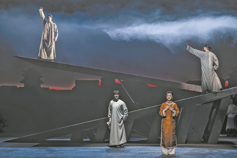 大型原創(chuàng)黃梅戲《延年和喬年》從安慶來到上海,用延喬兄弟二人的家鄉(xiāng)戲向他們致敬。圖為劇照。(演出方供圖)