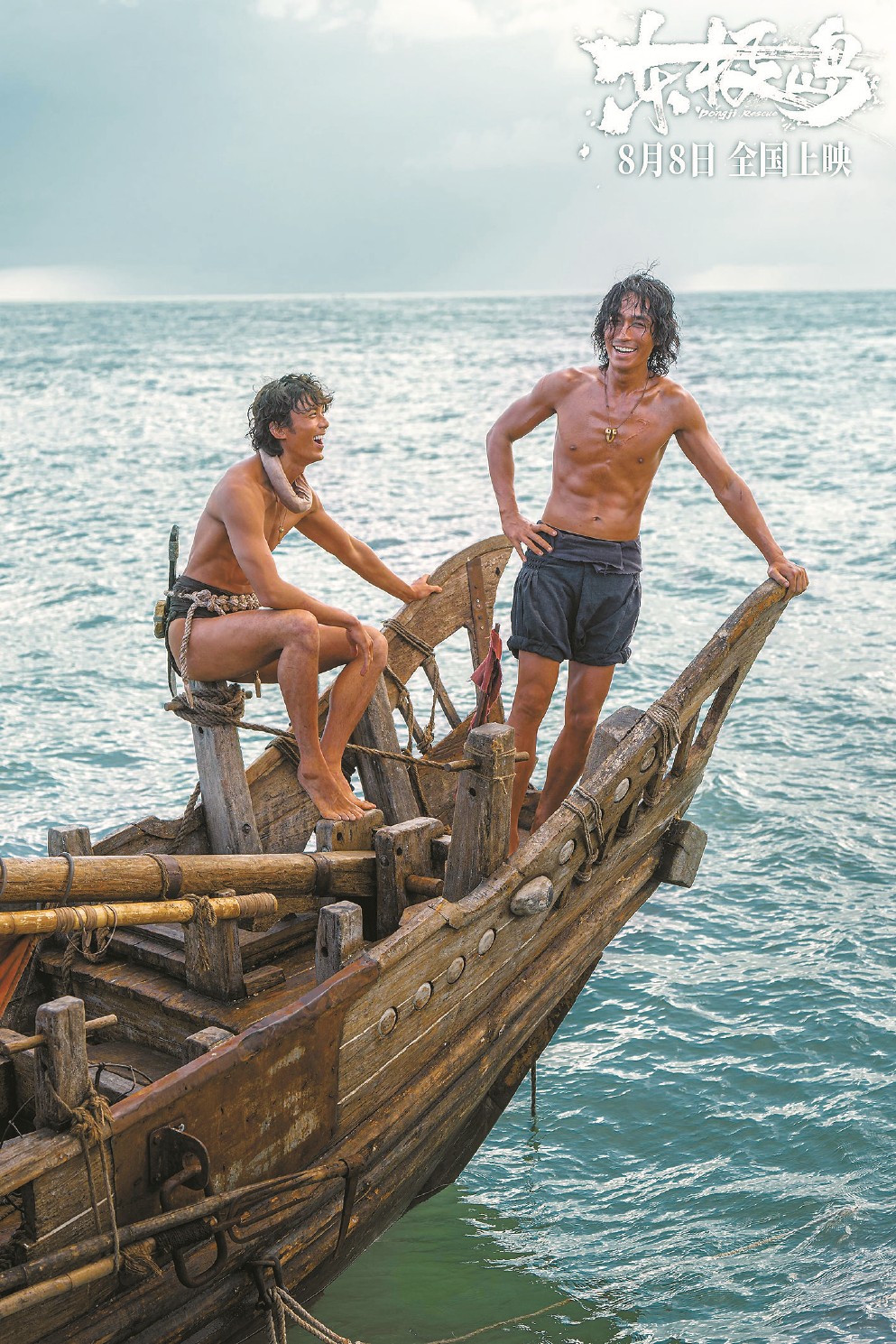 在僅有263人的封閉小島上,健康性感,彪悍狂放的阿赑與阿蕩顯得如此格格不入。為此,影片巧妙地——或許也略顯無(wú)奈地,將兩人設(shè)定為吳老大從海上“撿來(lái)”的孤兒,既規(guī)避了交代人物成長(zhǎng)背景的繁瑣,又通過(guò)兩人可能是“海盜后代”的身份,來(lái)合理化解釋兄弟倆超乎常人的水性、驚人的戰(zhàn)斗力。女主角阿花則是吳老大從人販子手上解救的養(yǎng)女,也可歸入“無(wú)根浮萍”型人物。當(dāng)三位主要角色都因缺乏家庭背景和成長(zhǎng)經(jīng)歷,而與當(dāng)?shù)貪O民群體形成了顯著區(qū)隔,這種處理方式暴露出商業(yè)類(lèi)型片在改編真實(shí)歷史事件時(shí)常見(jiàn)的困境:拘泥于史實(shí)容易顯得平淡呆板,放飛想象力則會(huì)破壞題材的嚴(yán)肅性。