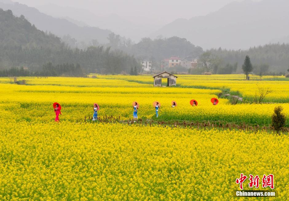 3月20日,江西省德興市海口鎮(zhèn)杜村婦女在田間花?!白咝恪?。當日,江西德興市??阪?zhèn)杜村一批家庭婦女以千畝油菜花海為舞臺,展示自己的才藝形象,希望宣傳家鄉(xiāng)的自然生態(tài)與人文歷史,擴大旅游知名度和影響力。德興市海口鎮(zhèn)杜村交通便利,自然風光優(yōu)美,村內有歷史古跡和名木古樹。 胡敦煌 攝
