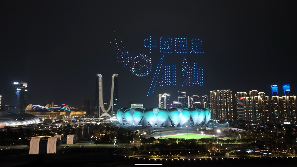 硬件設(shè)施方面,針對(duì)足球賽的特點(diǎn),場(chǎng)館進(jìn)行了全方位升級(jí),每一處細(xì)節(jié)都對(duì)標(biāo)國(guó)際賽事。在軟件服務(wù)上,杭州以“亞運(yùn)遺產(chǎn)”為基底,推出了多項(xiàng)氛圍營(yíng)造舉措:錢(qián)塘江兩岸上演足球主題燈光秀,2.5公里長(zhǎng)的江岸線躍動(dòng)著紅色光影;無(wú)人機(jī)群組成“眾志成城”標(biāo)語(yǔ)和足球軌跡圖案,閃耀“大蓮花”上空;全市339塊戶(hù)外大屏,滾動(dòng)播放著國(guó)足宣傳片、比賽集錦和賽事主題海報(bào)……