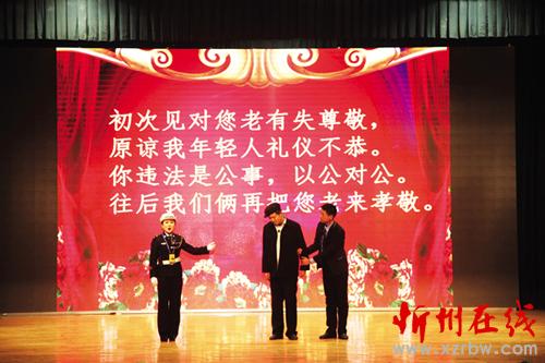 1月27日至29日,偏關(guān)縣公安局交警大隊(duì)交通安全文藝宣傳隊(duì)在隊(duì)長們的帶領(lǐng)下,先后走進(jìn)市實(shí)驗(yàn)中學(xué)、市客運(yùn)中心、國家電網(wǎng)忻州供電分公司進(jìn)行了三場(chǎng)演出,用自編自導(dǎo)自演、群眾喜聞樂見的“漫翰調(diào)”、“二人臺(tái)”、北路梆子、民歌等一系列極具地域文化特色的地方小戲、說唱歌舞等曲藝形式進(jìn)行宣傳演出,贏得滿堂喝彩,場(chǎng)場(chǎng)掌聲雷動(dòng)。作為春節(jié)回家路上的一道文化盛宴,這次春節(jié)前的平安出行警示教育“送安全下鄉(xiāng)”巡演是我市公安交警精心策劃、編排的春運(yùn)交通安全宣傳行動(dòng)之一。28日,市客運(yùn)中心人頭攢動(dòng),熙熙攘攘,大廳外懸掛的橫幅標(biāo)語“守護(hù)您的平安出行,保障道路安全暢通是每一位交警的神圣職責(zé)!”格外醒目。候車大廳里,暖意融融,市公安局交警支隊(duì)組織的春運(yùn)交通安全文藝演出正在進(jìn)行,交警版的民間小調(diào)《拜大年》、小品《警鐘聲聲》、雙簧《二愣子》等節(jié)目令人賞心悅目、捧腹不止。在歡笑之余,提醒和教育廣大群眾自覺抵制不文明、不安全交通行為,觀看演出的旅客和客車司機(jī)紛紛感慨,這樣的宣傳教育生動(dòng)形象,人人愛看且耐人尋味,警示作用很大。