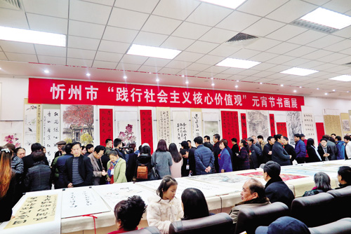 本報訊2月17日上午,由忻州市委宣傳部主辦、忻州市文聯(lián)和五臺山書畫院承辦的“忻州市‘踐行社會主義核心價值觀’元宵節(jié)書畫展”在五臺山書畫院開展。市政協(xié)主席張明成,市委常委、宣傳部長陳義青,市政協(xié)副主席賈玉文等領(lǐng)導(dǎo)與我市書畫愛好者共同觀展。