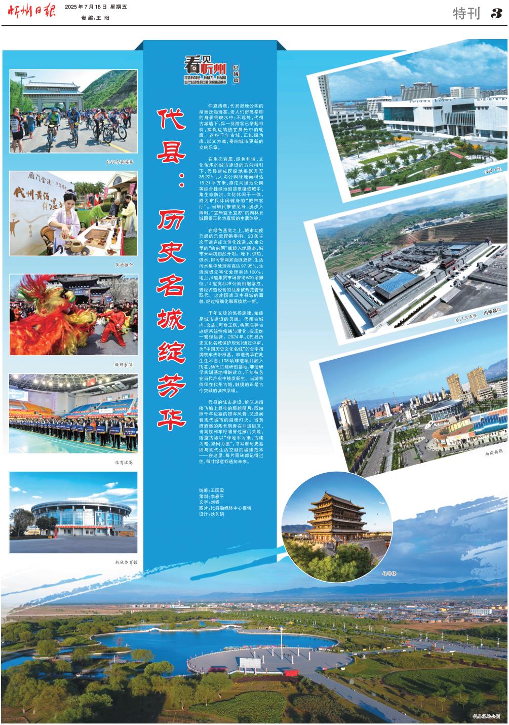 代縣的城市建設(shè),恰似邊靖樓飛檐上懸掛的那輪明月:既映照千年邊塞的雄渾風(fēng)骨,又浸潤(rùn)著現(xiàn)代城市的溫暖燈火。當(dāng)黃酒酒堡的陶甕飄香在非遺街區(qū),當(dāng)高鐵列車呼嘯穿過(guò)雁門(mén)關(guān)隘,這座古城以“綠地率為紙、古建為筆、路網(wǎng)為墨”,書(shū)寫(xiě)著歷史基因與現(xiàn)代生活交融的城建范本——在這里,每片青磚都記得過(guò)往,每寸綠意都通向未來(lái)。