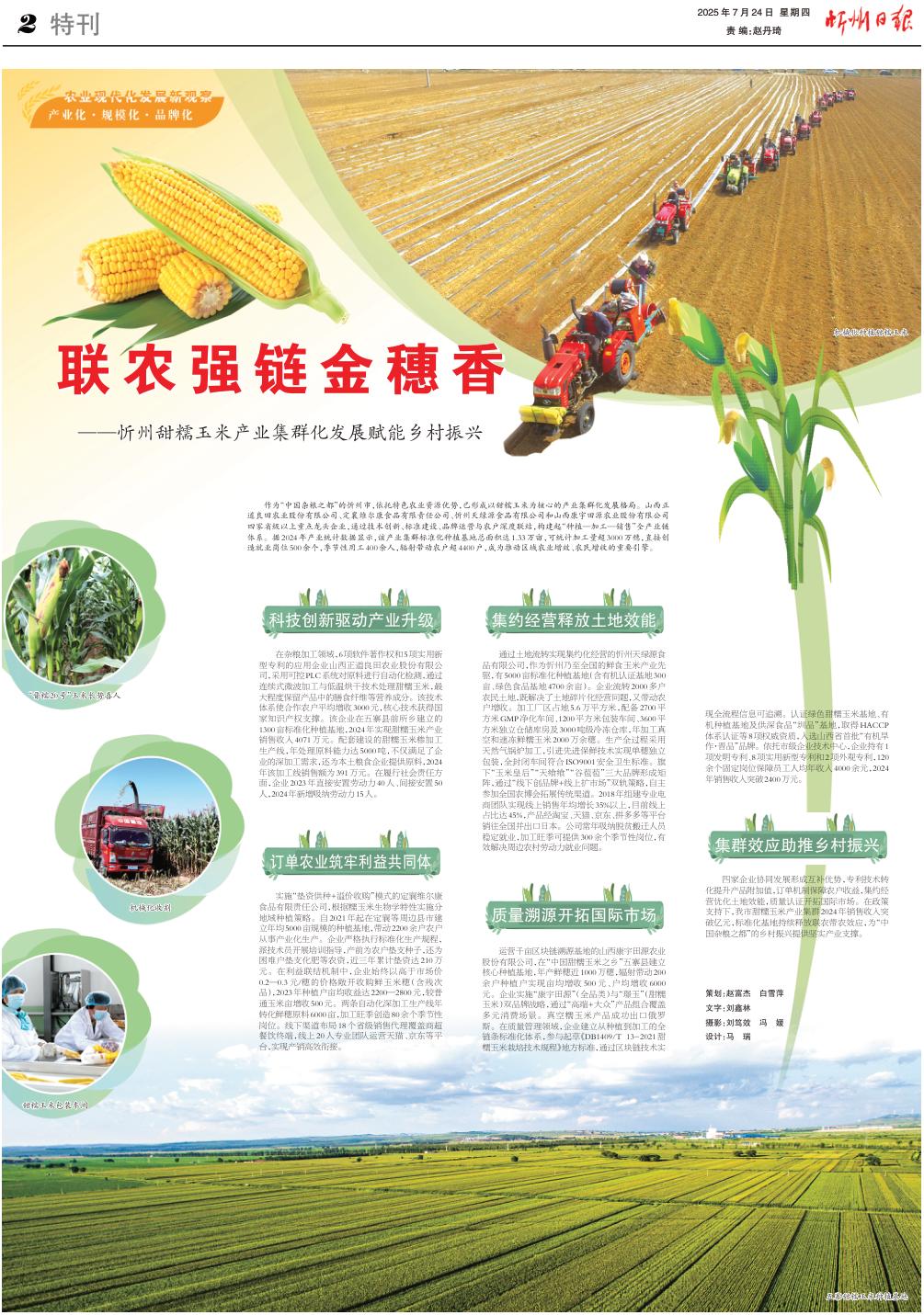 四家企業(yè)協(xié)同發(fā)展形成互補優(yōu)勢,專利技術(shù)轉(zhuǎn)化提升產(chǎn)品附加值,訂單機制保障農(nóng)戶收益,集約經(jīng)營優(yōu)化土地效能,質(zhì)量認(rèn)證開拓國際市場。在政策支持下,我市甜糯玉米產(chǎn)業(yè)集群2024年銷售收入突破億元,標(biāo)準(zhǔn)化基地持續(xù)釋放聯(lián)農(nóng)帶農(nóng)效應(yīng),為“中國雜糧之都”的鄉(xiāng)村振興提供堅實產(chǎn)業(yè)支撐。