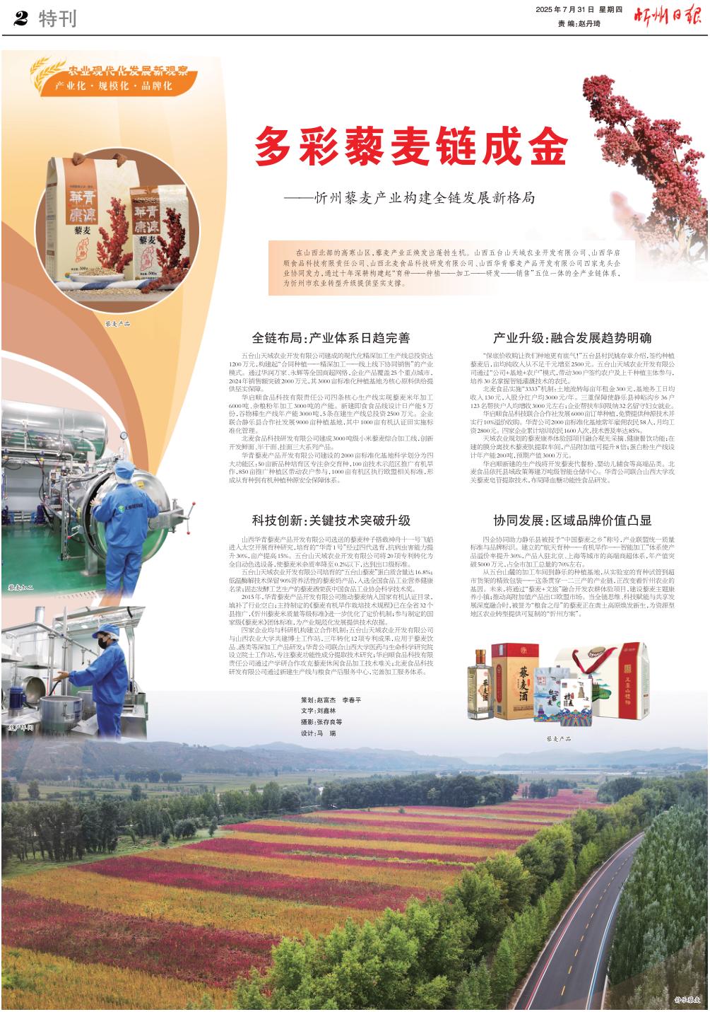 從五臺山麓的加工車間到靜樂的種植基地,從實驗室的育種試管到超市貨架的精致包裝——這條貫穿一二三產(chǎn)的產(chǎn)業(yè)鏈,正改變著忻州農(nóng)業(yè)的基因。未來,將通過“藜麥+文旅”融合開發(fā)農(nóng)耕體驗項目,建設藜麥主題康養(yǎng)小鎮(zhèn);推動高附加值產(chǎn)品出口歐盟市場。當全鏈思維、科技賦能與共享發(fā)展深度融合時,被譽為“糧食之母”的藜麥正在黃土高原煥發(fā)新生,為資源型地區(qū)農(nóng)業(yè)轉型提供可復制的“忻州方案”。