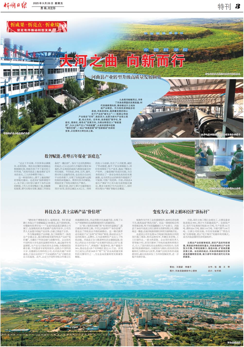 九曲黃河蜿蜒而過(guò),孕育了河曲縣厚重的發(fā)展底蘊(yùn);時(shí)代浪潮奔涌向前,推動(dòng)著這片土地加速產(chǎn)業(yè)蝶變。作為依托資源起步的縣域,河曲縣深知,高質(zhì)量發(fā)展的核心在于產(chǎn)業(yè)的“破與立”——既要讓傳統(tǒng)產(chǎn)業(yè)褪去“舊色”、煥發(fā)活力,也要為新興產(chǎn)業(yè)培土筑基、搶占先機(jī)。近年來(lái),該縣錨定“數(shù)字化、智能化、高端化、綠色化”發(fā)展方向,為煤業(yè)轉(zhuǎn)型注入“智能基因”,為鄉(xiāng)土特產(chǎn)注入“科技能量”,從廢棄資源中挖掘“循環(huán)價(jià)值”,一場(chǎng)從“依賴資源”到“創(chuàng)新驅(qū)動(dòng)”的深刻變革,正在黃河之畔生動(dòng)上演。