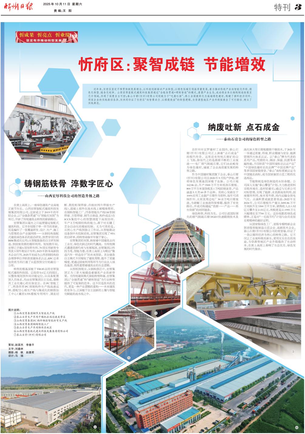 近年來,忻府區(qū)堅定不移貫徹新發(fā)展理念,以科技創(chuàng)新驅動產(chǎn)業(yè)轉型,以綠色低碳引領高質量發(fā)展,著力推動傳統(tǒng)產(chǎn)業(yè)向智能化升級、綠色化轉型、鏈條化延伸。山西宏厚裝配式建筑科技集團通過“全鏈條貫通+硬核智造”的模式,重塑產(chǎn)業(yè)生態(tài),成功將業(yè)務從鋼構制造拓展至芯片領域,實現(xiàn)了深度自主可控;泰山石膏(忻州)有限公司則致力于“吃廢吐新”,將工業(yè)固廢轉化為高端綠色建材,構建了循環(huán)經(jīng)濟閉環(huán)。兩家企業(yè)的實踐路徑各異,但共同印證了忻府區(qū)“向智要動力、以綠提效益”的轉型邏輯,為資源型地區(qū)產(chǎn)業(yè)升級探索出了可行路徑、樹立了實踐典范。
