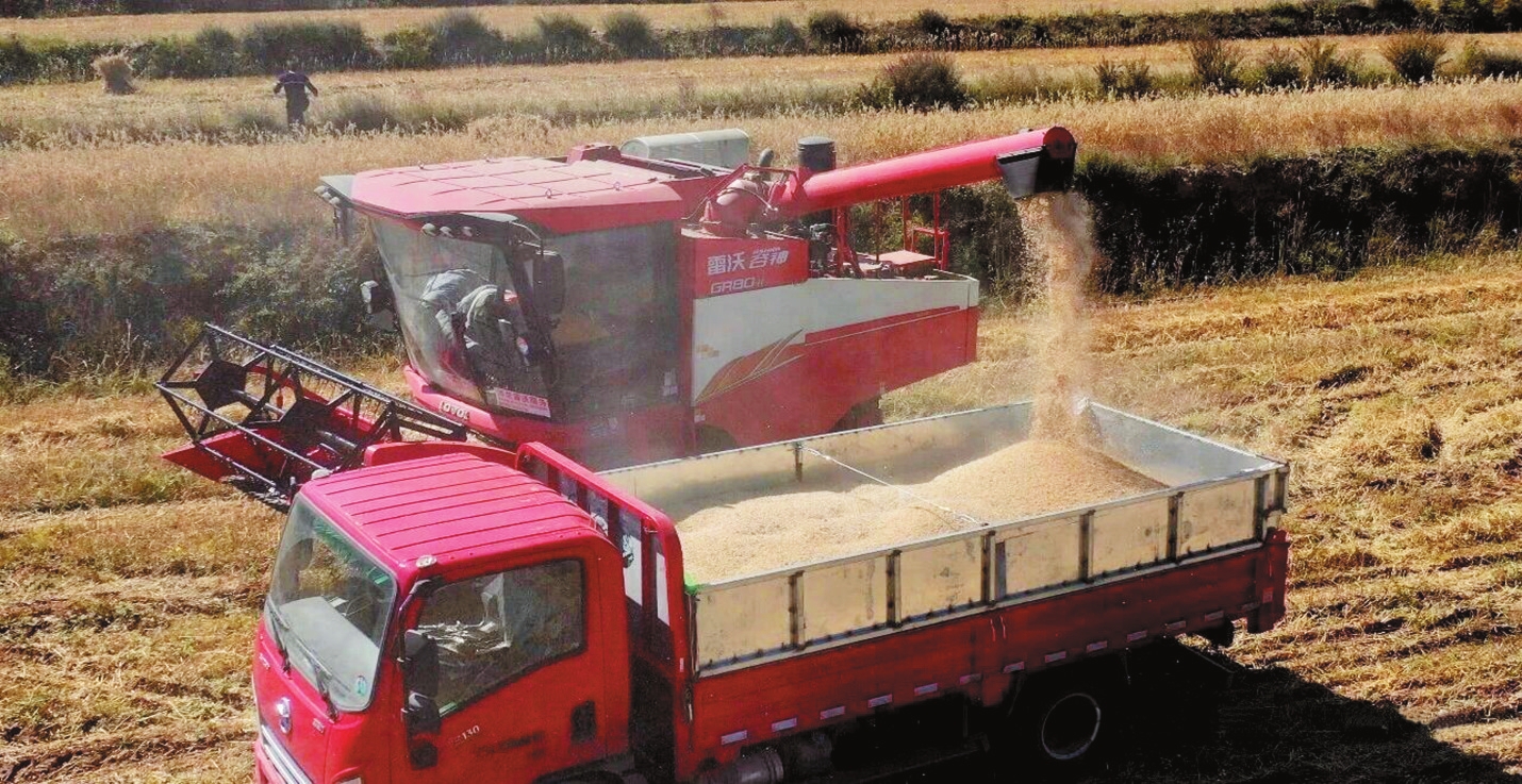 走進基地,放眼望去,廣袤的田野上泛著溫暖的金黃色,成片的莜麥穗粒飽滿,在風中拂動,傳遞著豐收的信號。大型收割機隆隆作響,在麥浪中穩(wěn)步穿梭,村民們緊隨其后,人機協(xié)作,全力保豐收。