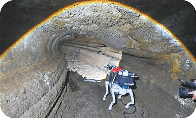 圖為柔性臂機(jī)器人在鏡泊湖火山地下熔巖管道現(xiàn)場工作。張春祥攝(人民視覺)