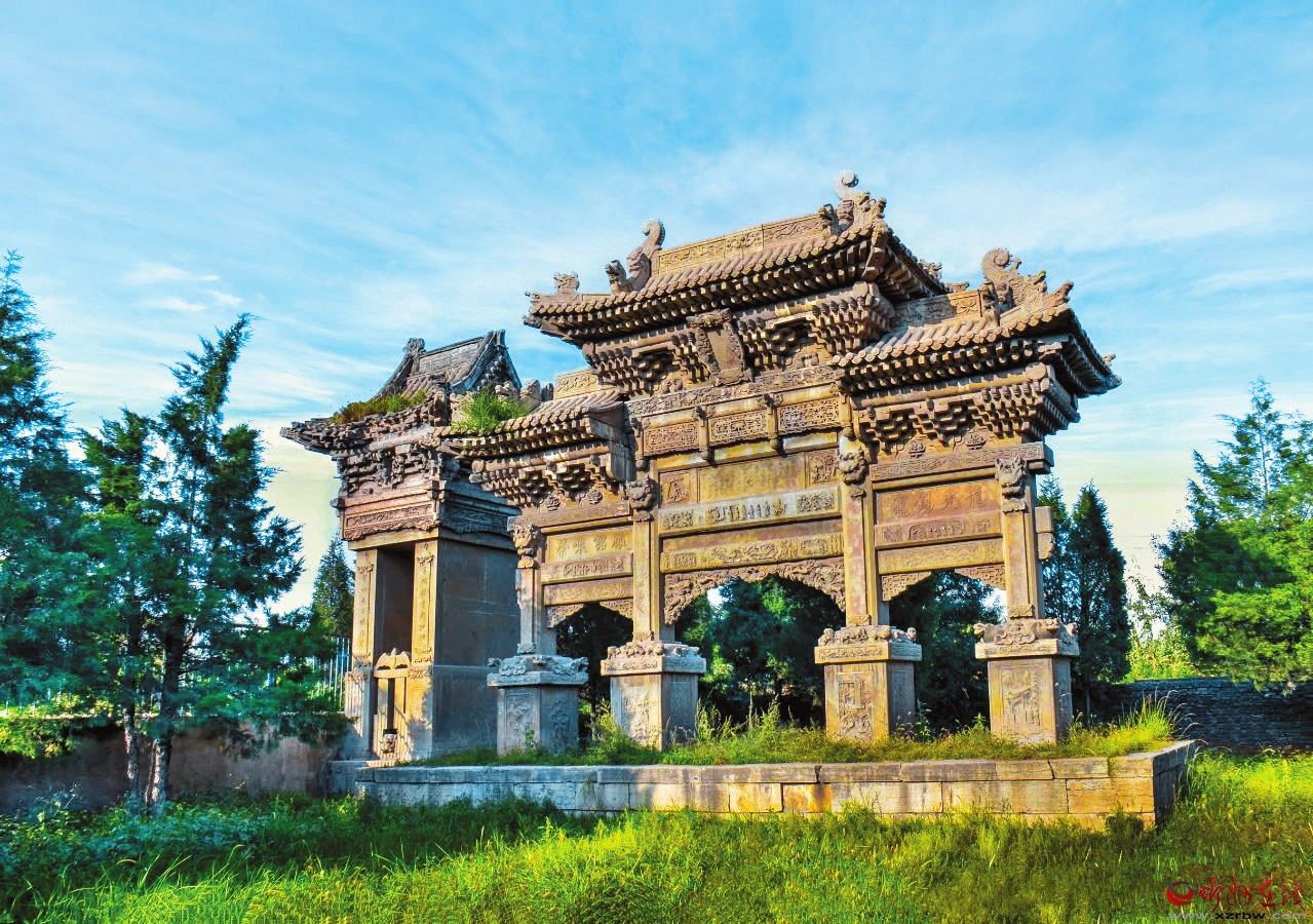 坐落于村中的朱氏牌樓是晚清中儀大夫、陜西延榆綏兵道加鹽運使武訪疇為其母所修的節(jié)孝牌坊。它不僅見證了朱氏家族的輝煌歷史,也反映了當時社會的文化風貌,承載著豐富的歷史文化內(nèi)涵,為第八批全國重點文物保護單位。牌樓有主坊和配坊兩座,主坊矗立在村內(nèi)南街,面寬三間,四柱三樓,重檐歇山頂,高近11米、寬15米。欄板內(nèi)剔底雕刻成一幅幅人物故事圖案,霸王柱間鏤雕丹鳳朝陽。匾形走馬板上書“柏舟矢志”“竹柏流芳”各四字。牌坊下檐明間置匾一塊,書“圣旨”二字,兩次間匾書分別為“懿范”“徽音”。配坊在村南,高8米有余,四柱三門,單檐歇山頂,規(guī)模略小,造型風格與主坊一樣,皆為石雕藝術精品。