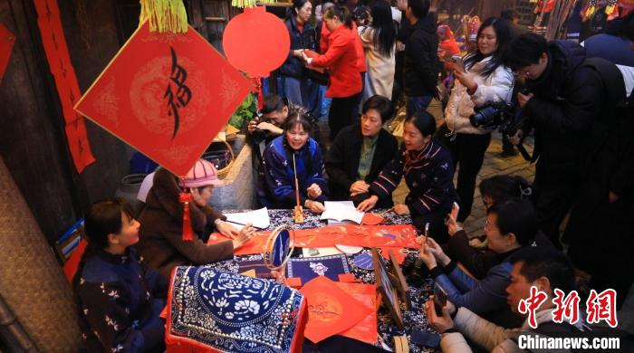 中新社湖南永州1月26日電 題:非遺活動迎新年 女書文創(chuàng)受青睞