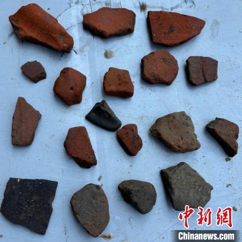普查隊(duì)員對(duì)該文化遺存進(jìn)行了詳細(xì)調(diào)查,發(fā)現(xiàn)該遺址分布范圍呈不規(guī)則弧形,面積約8300平方米。遺址區(qū)現(xiàn)為土豆、油菜等農(nóng)耕地,現(xiàn)場(chǎng)采集的陶片以?shī)A砂紅陶片、夾砂紅陶塊為主,少量夾砂灰陶,其中包含夾砂紅陶器物口沿殘片2件、夾砂灰陶器物口沿殘片1件,未見彩陶、石器、骨器等。根據(jù)遺址所處地理環(huán)境和出土遺存分析,該遺址可能為一處新石器時(shí)代聚落遺址。