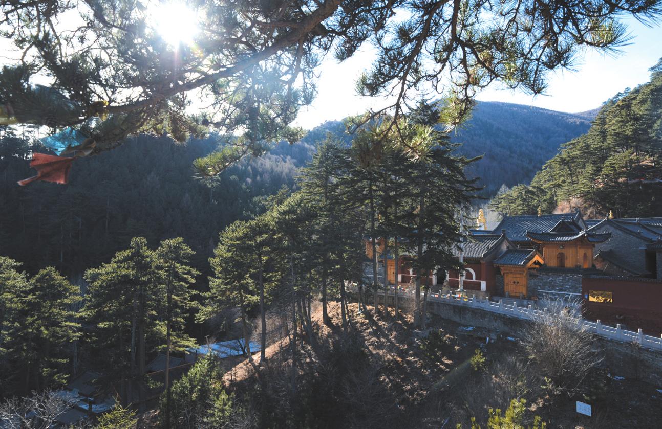 在海拔2796米的五臺(tái)山東臺(tái)頂,居高望遠(yuǎn),日出景象更加浩瀚壯闊,朝霞滿(mǎn)天,萬(wàn)道金光射向大地,云海、雪峰、金殿、金像相互輝映。