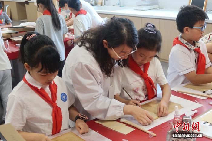 8月12日,青少年學生在浙江省檔案館了解檔案修復技術。 孫琳茹 攝