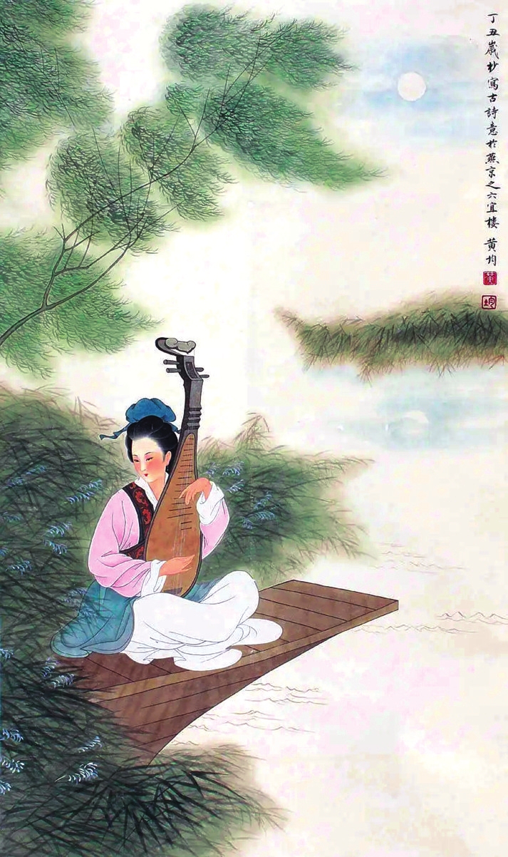 在《世說新語》中也不乏琵琶的身影:“仁祖(謝尚)企腳北窗下彈琵琶,故自有天際真人想?!标P(guān)于東晉名士謝尚演奏琵琶,《樂府詩集》中還有一段記載:“謝尚為鎮(zhèn)西將軍,嘗著紫羅襦,據(jù)胡床,在市中佛國門樓上彈琵琶,作《大道曲》。市人不知是三公也。”從中不難看出,士人優(yōu)雅彈奏琵琶所體現(xiàn)出來的魏晉風(fēng)度。