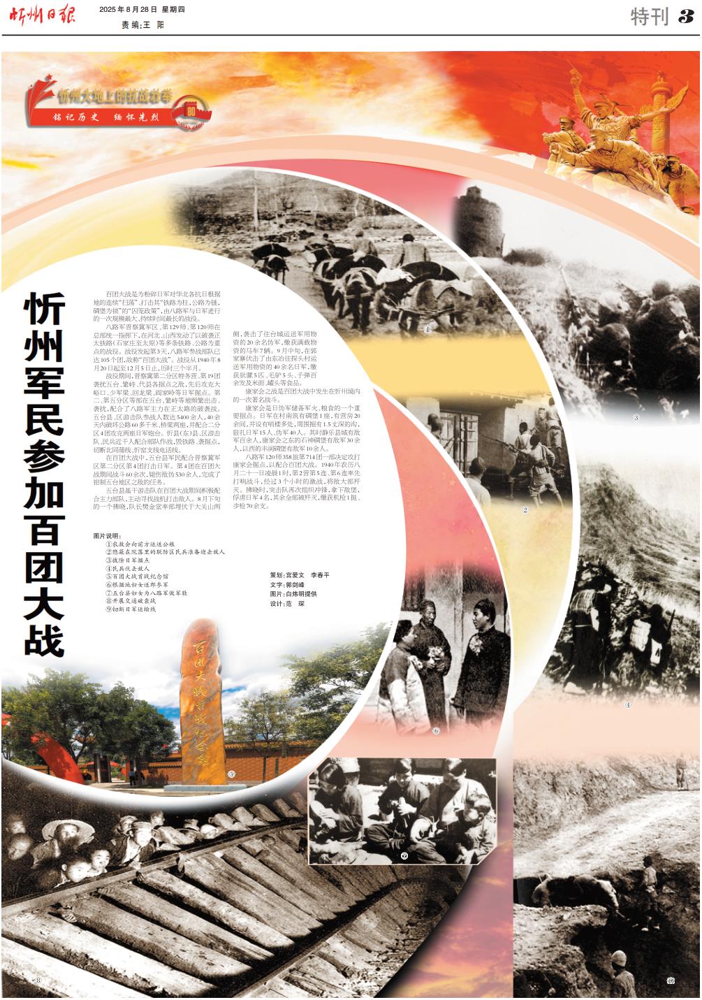 戰(zhàn)役期間,晉察冀第二分區(qū)特務營、第19團襲擾五臺、繁峙、代縣各據點之敵,先后攻克大峪口、少軍梁、回龍梁、閻家?guī)X等日軍據點。第二、第五分區(qū)等部在五臺、繁峙等地頻繁出擊、襲擾,配合了八路軍主力在正太路的破襲戰(zhàn)。五臺縣、區(qū)游擊隊參戰(zhàn)人數達5400余人,40余天內破壞公路60多千米、橋梁兩座,并配合二分區(qū)4團攻克兩座日軍炮臺。忻縣(東)縣、區(qū)游擊隊、民兵近千人配合部隊作戰(zhàn),毀鐵路、襲據點,切斷北同蒲線、忻窯支線電話線。