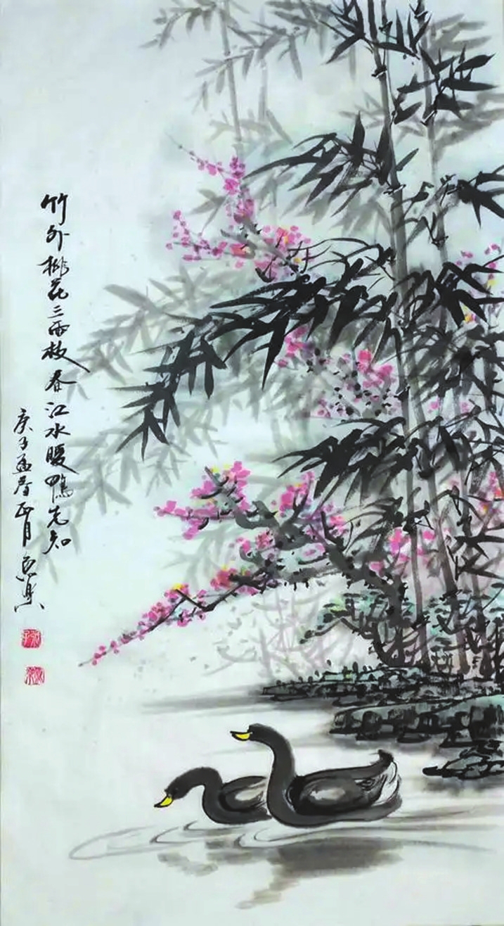 數(shù)字點染,精妙難言。古詩中常用數(shù)字實寫事物,前呼后應(yīng)形成點染。蘇軾《惠崇春江晚景》中寫“竹外桃花三兩枝,春江水暖鴨先知”,先以“三兩枝”具體描寫桃花零星開放的實景,渲染初春的環(huán)境氣氛,再以“春江水暖鴨先知”點明題旨。“三兩枝”不多不少恰到好處,點出初春的景物特征——少則春寒料峭,過于冷寂,多則春意盎然,稍嫌熱鬧,都無法與后文“春江水暖鴨先知”對季候變化的感悟相呼應(yīng)。葉紹翁的《游園不值》云“春色滿園關(guān)不住,一枝紅杏出墻來”,先點出“春色滿園”的主旨,再以“一枝紅杏”具體渲染春天壓抑不住的蓬勃生機,以及作者游園不成忽見“春色”破墻溢出的驚喜。這個“一”是其余數(shù)字替代不了的,數(shù)字點染,準(zhǔn)確精當(dāng),妙不可言。