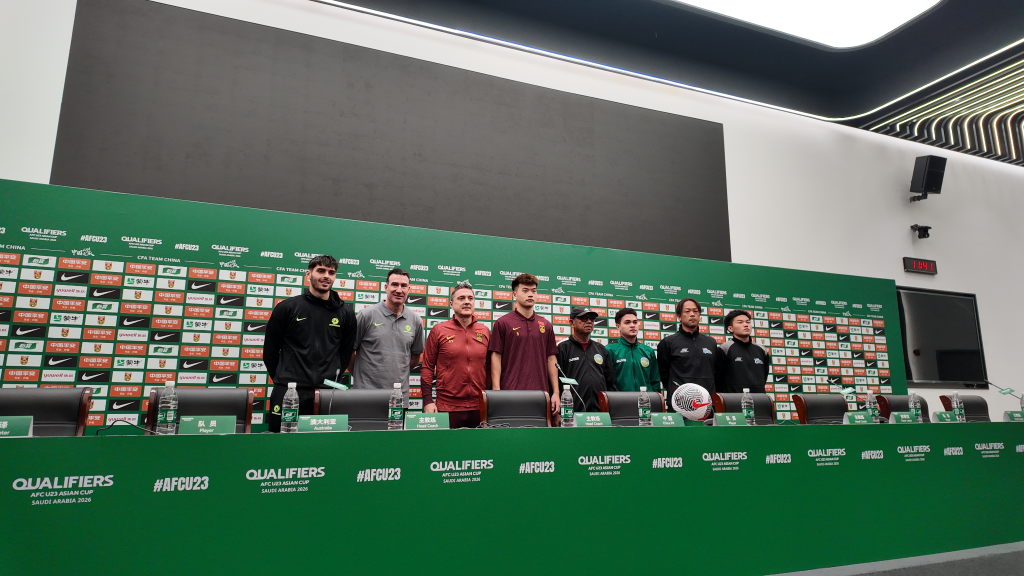 中國隊(duì)球員及教練團(tuán)隊(duì)在新聞發(fā)布會(huì)上