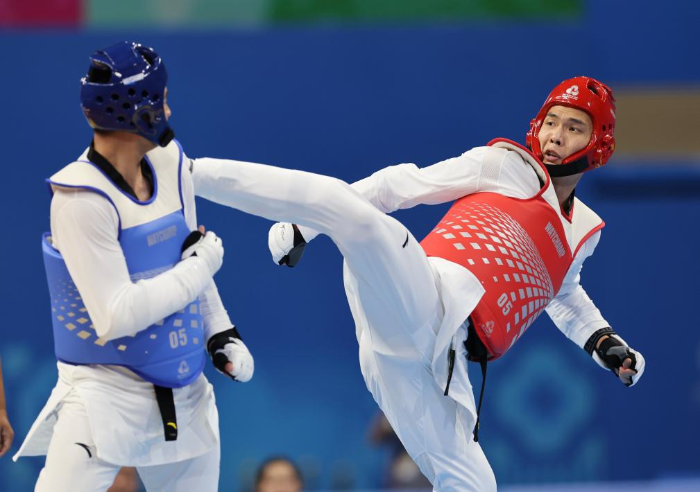 男子80公斤以上級(jí)決賽中,廣東隊(duì)選手王要錫在主場(chǎng)迎戰(zhàn)山東隊(duì)選手劉朝陽(yáng)。首局,王要錫憑借中段和高位連續(xù)得分,以12:4輕松取勝。第二局,王要錫率先完成側(cè)踢得分,劉朝陽(yáng)在追分過程中出現(xiàn)犯規(guī),最終王要錫再下一局,以總比分2:0獲勝,為廣東隊(duì)再添一金。