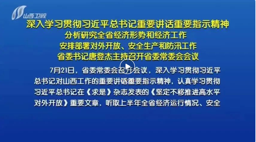7月21日,省委常委會召開會議,深入學(xué)習(xí)貫徹習(xí)近平總書記對山西工作的重要講話重要指示精神,認(rèn)真學(xué)習(xí)貫徹習(xí)近平總書記在《求是》雜志發(fā)表的《堅定不移推進(jìn)高水平對外開放》重要文章,聽取上半年全省經(jīng)濟(jì)運行情況、安全生產(chǎn)形勢和防汛工作情況匯報,研究部署下一步工作,審議通過《關(guān)于嚴(yán)格落實“四水四定”的實施方案》。省委書記唐登杰主持會議。