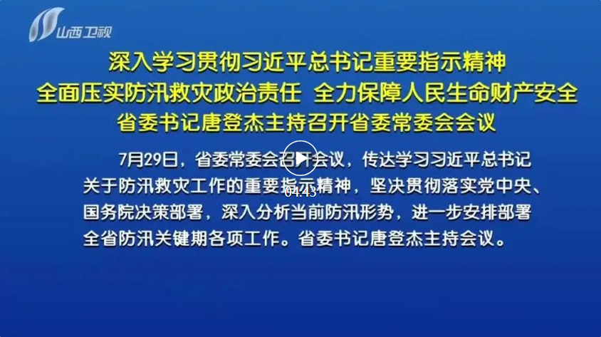7月29日,省委常委會召開會議,傳達學習習近平總書記關(guān)于防汛救災工作的重要指示精神,堅決貫徹落實黨中央、國務(wù)院決策部署,深入分析當前防汛形勢,進一步安排部署全省防汛關(guān)鍵期各項工作。省委書記唐登杰主持會議。